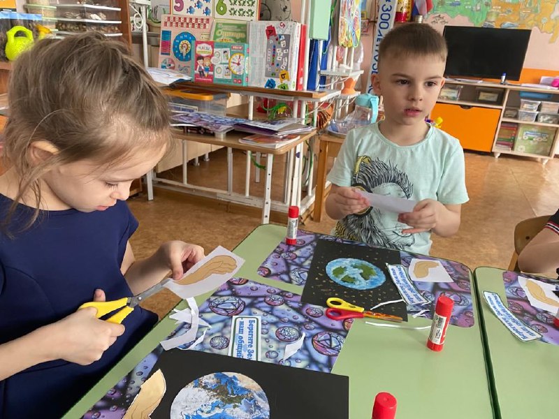 Дети старшей группы «Радуга» не остались в стороне и приняли активное участие в подготовке и проведении тематического дня, посвящённого нашей планете Земля. Совсем недавно говорили о космосе, Солнечной системе, планетах, а сегодня обратили своё внимание на нашу родную планету, наш общий дом. С ребятами беседовали о нашей прекрасной планете, её красоте и разнообразии природных явлений, а также о проблемах, которые стоят перед ней и угрожают жизни и безопасности планеты; о том, что всем нам надо заботиться о своём общем доме, беречь и защищать его. Каждый воспитанник группы изготовил мини-плакат для участия в акции «Берегите Землю — наш общий дом!» для родителей.