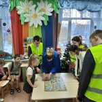 27 сентября сотрудником ОГИБДД Баско Т.В. была проведена беседа с воспитанниками подготовительной группы о правилах дорожного движения. В игровой форме дошкольники закрепили знания о правилах дорожного движения, отгадывали загадки о дорожных знаках. В игровой форме расширили свои представления о правилах поведения на улице.
